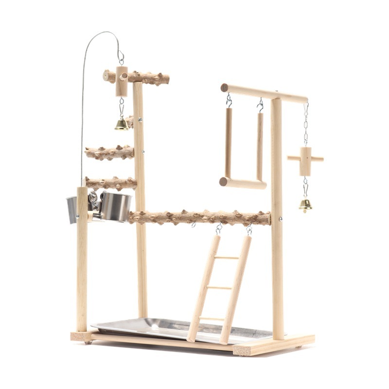 Bird Playground Interactive Platform Stand Pole Solid Wood Frame