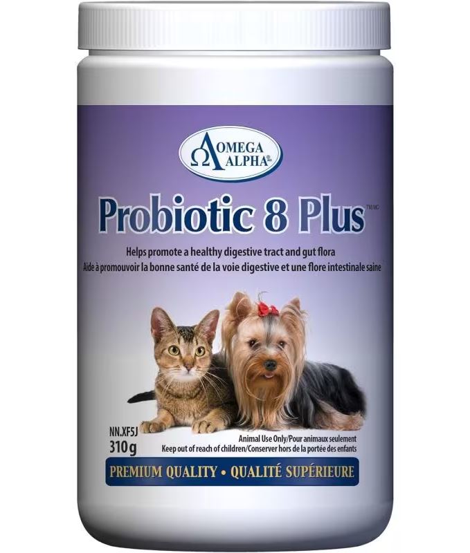 High-quality probiotic powder featuring 8 beneficial strains and digestive enzymes to support balanced gut flora and enhance nutrient absorption for dogs and cats. Promotes digestive health and overall well-being.